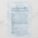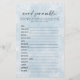 Añade un toque divertido y festivo a tu ducha de bebé de invierno con el juego de tragaperras de nieve simple azul. Este bonito juego presenta un encantador diseño acuático con suave copos de nieve azul, que captan perfectamente la acogedora atmósfera de invierno de una celebración "Baby It's Cold Outside". Sencillo pero entretenido, desafía a los huéspedes a descifrar palabras relacionadas con el bebé, proporcionando horas de diversión interactiva. Ideal para una ducha de bebé, este juego de scramble es una buena manera de mantener a los huéspedes comprometidos y complementar su decoración temática de invierno. Con su encanto nevado y su naturaleza lúdica, este juego es un éxito en su ducha de bebé.