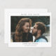 Sencilla boda fotográfica económica Salva la fecha con tipografía y foto mínimas en el frente. La parte trasera tiene detalles adicionales.