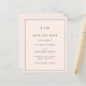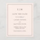 El sencillo presupuesto rosa rubor ahorra la fecha con un diseño moderno y elegante con su monograma de dos letras en la parte superior y los detalles de su boda rodeados de un borde delgado. Una moda y un diseño de diseño, ideal para una pareja minimalista.