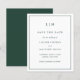 Un presupuesto sencillo permite guardar la fecha con un diseño moderno y elegante con su monograma de dos letras en la parte superior y sus detalles bodas rodeados de un borde delgado. Todos los elementos de diseño están en verde forestal y pueden cambiarse en la herramienta de edición de diseño. Una moda y un diseño de diseño, ideal para una pareja minimalista.