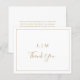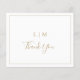 Tarjeta de agradecimiento simple y boda de presupuesto con un diseño moderno y elegante con un monograma de dos letras junto con "gracias" en un tipo de letra manuscrita rodeado de un borde delgado. El reverso tiene tu mensaje personalizado. Todos los elementos de diseño están en oro falso y pueden cambiarse a cualquier color que desee en la herramienta de edición de diseño. Una moda y un diseño de diseño, ideal para una pareja minimalista.