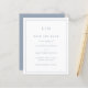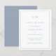 Un presupuesto sencillo permite guardar la fecha con un diseño moderno y elegante con su monograma de dos letras en la parte superior y sus detalles bodas rodeados de un borde delgado. Todos los elementos de diseño están en azul polvoriento y pueden cambiarse en la herramienta de edición de diseño. Una moda y un diseño de diseño, ideal para una pareja minimalista.