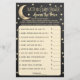 Este juego "sobre la luna" es perfecto para cualquiera que tenga una ducha de bebé este año. El diseño presenta una luna de oro con estrellas en un fondo de efecto de pizarra y un texto de plantilla fácil de personalizar. Solo tienes que dar estas cartas de juego a tus clientes para que jueguen en la ducha, el que esté más cerca del coste total real, sin pasar por aquí, gana un premio de tu elección.