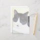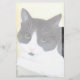 Una pintura acuarela de un gato blanco y negro muy afortunado llamado Sophie. Era una gata salvaje, vulnerable por estar parcialmente paralizada. Fue capturada por un amigo amante de los animales, recibió cuidados veterinarios y ahora vive en casa.