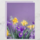 Soft yellow and purple blossoms against a calm lavender background, creating a warm and uplifting spring mood.
