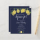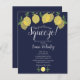 Con una vegetación de limones sobre un fondo azul marino, esta moderna invitación botánica a la ducha con presupuesto puede ser personalizada con su información especial para eventos. Diseñado por Thisisnotme©