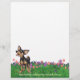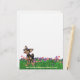 Desfile Animal Chihuahua Coordenando Estaciones y Accesorios Personalizados para Perros, presenta nuestro original arte de un lindo personaje de perro chihuahua negro y tan morado parado en un patio de hierba con un cielo azul y violeta texturizado con un divertido borde violeta ondulado. Este divertido arte mascota, pintado por el talentoso ilustrador infantil Traci Van Wagoner, es perfecto para los amantes del Chihuahua, los amantes del perro y los amantes del arte animal humorístico de todas las edades. En muchos de nuestros caprichosos accesorios de papel para perros pequeños encontrarás este lindo perro viniendo y yendo con su cabeza en un lado y esta cola en el otro. Únete al Desfile de Animales y trae una sonrisa a la cara de alguien que amas con un regalo de nuestros adorables conjuntos de regalos de papelería de perro Chihuahua, personalizados y coordinados. ¡Vaya!