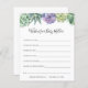 Haga que sus huéspedes llenen estos adorables deseos de tarjetas para bebés en su ducha de bebé. Con suculentos color agua verde y morado. Personaliza el con el nombre y la fecha de ducha de la futura mamá.