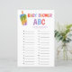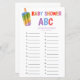 Summer Popsicle Baby Shower Game ABC Esta tarjeta de juegos para bebés complementa mi linda "fiesta de verano de crema de hielo popsicle" Baby Shower Collection. Encontrarás la invitación, los encartes, los Rótulos y los artículos coincidentes en mi tienda de Zazzle.