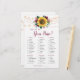 Esta tarjeta de juegos de ducha de novia es ¿Qué hay en tu bolso? El diseño incluye girasoles acuáticos y flores rosas burdeos con follaje y luces de cuerda. Personaliza la parte posterior de las tarjetas con el nombre de la novia. Productos a juego disponibles.