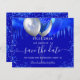 Un fondo de color azul real a la moda, decorado con goteos azules reales, confeti y globos. Personalice y agregue una fecha y un nombre/edad. El texto: Save the Date se escribe con un gran guión de estilo escrito a mano.