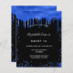 Invitación a una fiesta de 16 cumpleaños, joven y de moda. Delante: Un fondo negro de moda. Decorada con tonterías purpurinas de color azul real, con pinturas que gotean. Personalice y agregue un nombre y detalles del fiesta. El nombre se escribe con un guión de estilo con letras a mano.