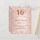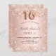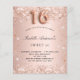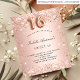 Para una elegante fiesta de 16 y 16 años. Fondo subió de gradiente dorado. Decorado con rosa de oro falso polvo purpurina. Personalice y agregue un nombre y detalles del fiesta. El nombre se escribe con un guión de estilo con letras a mano. El número 16 se escribe con un tipo de letra de estilo globo.