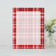 Este membrete rojo y blanco tiene un patrón repitido, marcado/tartán, con texturas ligeras. Es un patrón brillante y elegante que hará que sus cartas destaquen. El espacio medio está lleno de un espacio blanco semitransparente, por lo que tendrás espacio para escribir.