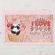 Un adorable oso panda con un delicioso quequito. Incluye las palabras "Te amo más que cupcakes". Back dice Feliz Día de San Valentín sobre un fondo rosa claro. ¡El texto de atrás se puede editar para que sea un mensaje personal a una persona especial!