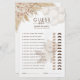 El juego de ducha de bebé de oso de peluche Boho presenta un simple fondo blanco, un oso chico acuarela, globos, pampas bohemias rústicas, flores y una plantilla de "adivina quién, mamá o papá" que es fácil de personalizar.