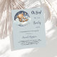 Para una ducha de bebé celebrando a un niño. Un fondo gris azul. Un lindo oso de peluche durmiendo en una nube. Personalice y agregue el nombre de la futura madre y los detalles del fiesta. El nombre y el texto: Oh Boy! y Bearly están escritos con una escritura a mano. 1 hoja = 1 borde impreso de invitación al borde.