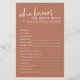 ¡Sujete tu ducha de novia con el ineludible Terracota que conoce el mejor juego de ducha de novia! Este juego minimalista añade un toque moderno a cualquier ducha de novia con un diseño limpio y contemporáneo. Este juego, con preguntas para revelar la personalidad y las preferencias de la novia, fomenta la risa y la competencia amistosa entre los invitados. La novia estará encantada de descubrir quién presta la mayor atención a los pequeños detalles que la hacen única.