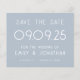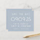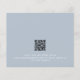 Un precio económico más bajo 4,5 x 5,6" alternativo en 110 libras similar en grosor a una postal. Hay UNA por hoja. Texto grande presupuesto Boda azul turbia Guardar la fecha, elegancia moderna con este diseño de tipografía elegante y totalmente personalizable. Personalice fácilmente el texto y, si tiene un sitio web boda, genere automáticamente un código QR para él en la parte posterior reemplazando la dirección URL de ejemplo por la de su sitio web boda. Puede eliminar el código QR de ejemplo si no se requiere mediante la opción de edición adicional, donde también puede editar los colores y estilos de texto y los colores de fondo de cada lado si así lo desea.