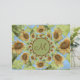 Girasol amarillo con cielo azul. Monograma de letra circular verde marrón. Este papel de 110 lb se puede usar en tu álbum de fotos, proyectos de manualidades o decoupage que requieren un papel más pesado. Papel de scrapbooking de flores de campo en caleidoscopio. Patrón abstracto bohemio. Estilo floral botánico de verano inspirado en la granja. Elegante, moderno, fresco, chic, rústico. Imagen con derechos de autor Marg Seregelyi Photography.