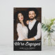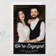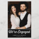 ¡Estamos comprometidos! Anuncie su compromiso con la familia y amigos con esta tarjeta de papel de invitación de compromiso fotográfico de personalizable. Presenta escritura retro y tipografía simple. Esta invitación de compromiso fotográfico clásico está disponible en otros colores. Personalice agregando sus fotos, nombres y otros detalles.
