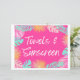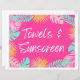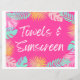 Rótulo 8x10" "Toallas y protector solar". Se imprimirá en papel pesado de 8.5x11" de color blanco. Se recortará el borde blanco para obtener el tamaño de 8 x 10". Puede enmarcar el signo o mostrar como desee.