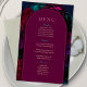 Tonos de joyas florales burgundy y navy para menú de boda chic. Agregue un toque de elegancia a su recepción con este menú de boda floral de tonos de joyas chic. Con una paleta sofisticada de flores de burgundy, navy, fucsia, magenta, turquesa y púrpura, este diseño complementa hermosamente un tema de boda rico y romántico. La tipografía elegante y el diseño moderno resaltan cada plato con gracia y claridad, asegurando que sus invitados disfruten de una experiencia gastronómica sin interrupciones. Perfecto para bodas de otoño, invierno o noche, esta tarjeta de menú es una adición práctica y decorativa a su decoración de mesa.