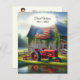 Lámina Tractor Rojo Viejo Con Bandera Americana