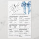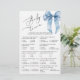 Lámina Trivia de bebé Script Blue Bow Baby ducha