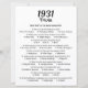 Lámina Trivia Game 1931 | 94.º partido de cumpleaños