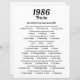 Lámina Trivia Game 1986 | 39.º partido de cumpleaños