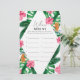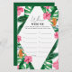 Invitación a la ducha de nubes tropical Palms Watercolor. El diseño cuenta con un elegante ramo acuático de vegetación acuática clásica y flores, que incluyen hibiscos rosas, pájaro paradisíaco y naranja, vegetación verde y hojas de palmera verde oscuro.