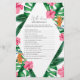 Invitación a la ducha de nubes tropical Palms Watercolor. El diseño cuenta con un elegante ramo acuático de vegetación acuática clásica y flores, que incluyen hibiscos rosas, pájaro paradisíaco y naranja, vegetación verde y hojas de palmera verde oscuro.