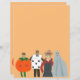 La pintura de cuatro niños en trajes, listos para engañar o tratar, se imprime en papel plano de 8.5 x 11 pulgadas. Divertida elección para la reserva de recortes de Halloween, el periodismo y o como papel de papelería. El fondo es un naranja nebuloso y los disfraces son una calabaza, un dado, una vaquera y un fantasma. Gracias por comprar en ScrapbookBackgrounds en Zazzle.