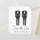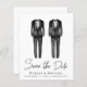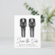 Sin ánimo de presupuesto, ninguna boda gay con fotos salva la invitación de fechas con acuarelas de dos tuxedos y "Save the Date" en un guión elegante. Añada sus nombres, fecha de boda y ubicación en la tipografía moderna. En el reverso, personaliza tu reserva de la fecha anunciada con más detalle.