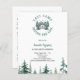 Un fondo blanco. Decorada con un icono del campamento verde. Personalice y agregue el nombre de la novia para ser y los detalles del fiesta. Texto: Último campamento antes del velo. Vuelta: itinerario del fin de semana. 1 hoja = 1 borde impreso de invitación al borde.