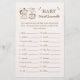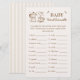 Haz que los invitados se rían y compitieran con esta tarjeta de juego para bebés de Baby Word Scramble. Con una acogedora taza de café con corazón y hervidor de mocha en un sencillo diseño rústico, esta carta es una manera divertida de mantener entretenidos a todos mientras celebran a la futura mamá. Los clientes desechan palabras relacionadas con el bebé y la ducha, ¡y la primera persona en terminarlas todas gana! Este juego incluye las siguientes palabras para descifrar: 1. leche, 2. manta, 3. mecedor, 4. cuna, 5. pañal, 6. ducha, 7. pacificador, 8. pato de goma, 9. rattle, 10. bib, 11. cigüeña, 12. stroller, 13. vivero, 14. café, 15. trona alta. asiento para automóvil, 17. fórmula, 18. bodysuit, 19. baby, 20. botella Perfecto para una cafetería Bébé con ducha para bebés o un brunch de Baby Brewing, esta tarjeta de juegos se adapta con gusto a la decoración temática del café y mantiene a los huéspedes comprometidos.