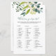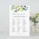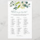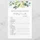 Este diseño presenta un ilustracion acuático de vegetación y hojas de eucalipto. Green Bridal Shower Games - Tarjeta doble cara - Dos juegos en uno! Bridal Qué hay en tu juego de bolso en la parte delantera de la carta y el juego de Boda Scramble al revés. La clave de la respuesta: novia, novio, torta boda, luna de miel, amor verdadero, vestido blanco, encaje, felicidad, unidad de velas, dama de honor, padrino, funcionario, capilla, votos matrimoniales, anillo al portador