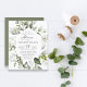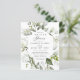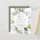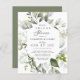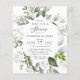 Esta Invitación a la ducha con flores de verde del presupuesto - presenta escritura manuscrita negra con un frondoso marco floral que consiste en flores blancas y bayas blancas y con ramas verdes sobre el fondo blanco. El reverso de la invitación a la novia es verde polvoriento. Tenga en cuenta que los sobres NO están incluidos en este diseño. Si necesita sobres, por favor compruebe nuestra colección o compre por separado del mercado.