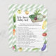 "El bebé que ha crecido localmente está en camino". ¡Celebra con este fiesta de ducha de color de agua con temática vegetal! Cupón acuático, cebolla, berenjena, calabacín, tomates amarillos y rojos, rábanos, zanahorias, pimiento caliente, pimiento amarillo dulce, guisantes y col, brócoli y remolacha en una tabla de despiece. Cosecha orgánica acuarela.