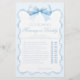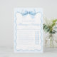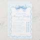 Sofisticado clásico "Adivina quién? Juego "Mamá o Papá" diseñado para una ducha de bebé, adornado con una encantadora proa azul pastel, marco de cinta. Haga participar a sus huéspedes en este delicioso juego, perfecto para añadir diversión y emoción a su celebración mientras crea recuerdos preciados.