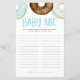 ¡Bebé ABC! Rellene un nombre para cada letra del alfabeto. ¡La primera persona en terminar gana! | Añada esta tarjeta de juego Baby ABC divertida a su ducha de bebé. Esta tarjeta de juego trivia con ducha para bebés incluye donuts de color azul, blanco y chocolate con rociadores de colores. Personalice agregando nombres, eventos y fecha. El Baby ABC es perfecto para cualquier temporada de duchas para bebés o tema.