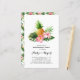 Invitación divertida y festiva a una fiesta de compromiso tropical que incluye ilustraciones acuáticos de hibiscos rosas, piña y follaje con un patrón tropical para la espalda. Esta invitación de verano es totalmente editable para cualquier evento tropical y de estilo hawaiano. Personalice agregando sus detalles.