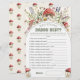 Who Knows Daddy Best? Baby Shower Game Card featuring a whimsical watercolor design with red toadstool mushrooms, wildflowers, and soft greenery. Cute baby shower game and cards for guests for a forest mushrooms themed baby shower - perfect for a Whimsical, cute celebration. Guests answer fun questions about the dad-to-be and tally their score, making an easy, interactive activity for game tables, favor displays, and woodland/boho baby shower decor.