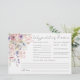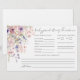 This horizontal Baby Predictions & Advice card features a charming watercolor design with blush pink and purple pastel wildflowers on the top left. The soft florals create a sweet and whimsical vibe, perfect for a baby shower. A clean white background on the back is customizable to match your theme.