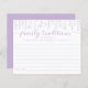 This Wildflower Family Traditions baby shower game card features soft lavender botanical artwork with lined space for guests to share cherished family traditions from their childhood.