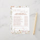 ¡Celebremos a la futura novia con nuestra encantadora ducha de flores silvestres dijo que era juego! Los huéspedes podrán adivinar quién dijo o qué hizo con estas preguntas divertidas y perspicaces sobre la pareja feliz. Con hermosos diseños de flores silvestres, este juego es el complemento perfecto para sus festividades de ducha de novias. Es una manera deliciosa de aprender más sobre la novia y el novio mientras se crean momentos memorables. ¡Que empiece la diversión y vea quién conoce mejor a la pareja!