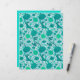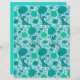 Papel en un patrón William Morris, Jacobean floral, textil - elegante, estilizado, crisantemo, girasoles y hojas, en tonos claros a turquesa profunda, verde azulada y aqua, sobre un fondo blanco