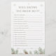 Lámina Winter Baby Shower Who Knows The Bride Best Game