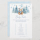 Añada un toque de elegancia a su ducha de bebé con temática festiva de invierno con nuestro sofisticado juego "Baby Traits". Con un encantador oso de peluche vestido con un lindo gorra azul y una bufanda, con un globo azul, rodeado de pinos de invierno y copos de nieve y un patrón de gingham azul en la parte trasera, esta deliciosa actividad es perfecta para entretener a sus huéspedes y crear recuerdos duraderos. Ideal para añadir diversión y emoción a su celebración especial!